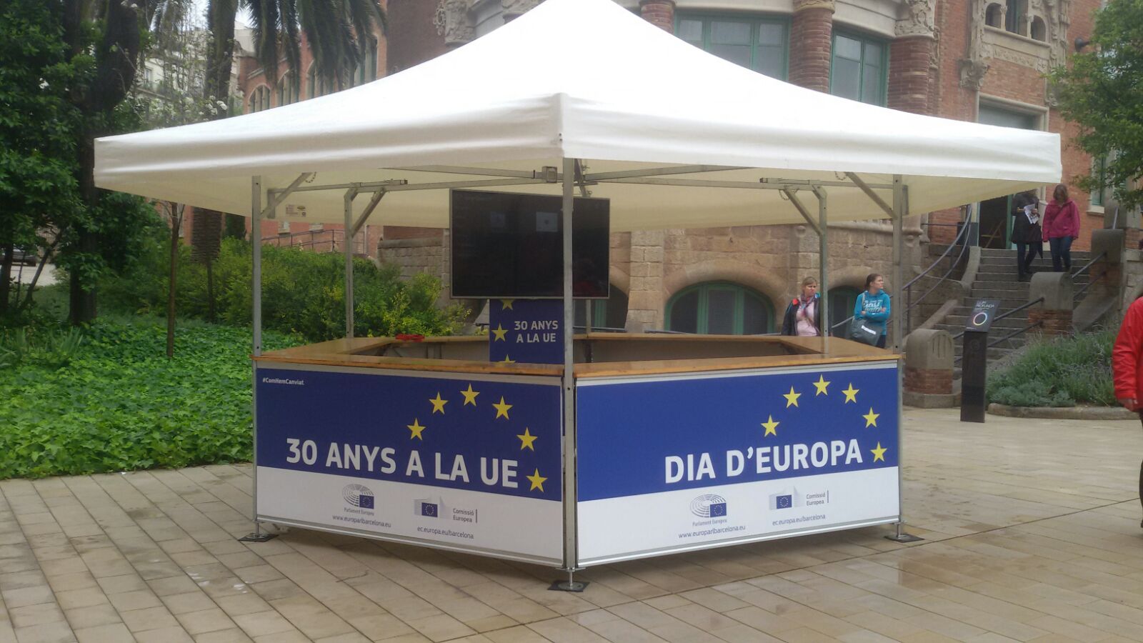 Con motivo de las actividades enmarcadas en la celebración del Día de Europa y de los 30 años de España en la Unión Europea, se instaló un punto de información en el recinto modernista de Sant Pau, durante la jornada de puertas abiertas del domingo 8 de mayo.